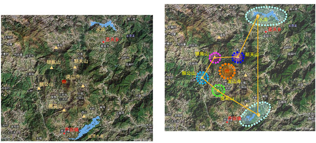 1、 《中心景区》约200平方公里(30万亩),以紫云山、莲花山、银瓶山、朝天山、国公山等七大名山范围为主体。约含其中三镇,原住民约10万人。