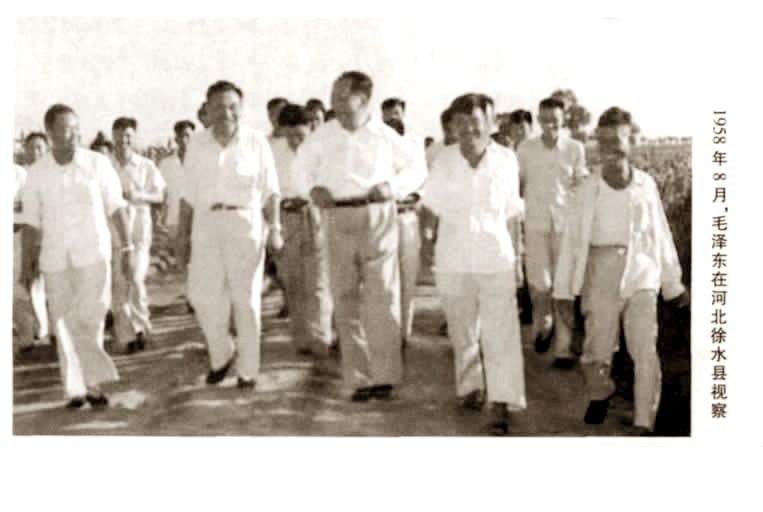 河北徐水县在“大跃进”的过程中,曾经放了一亩地产山药120万斤、小麦12万斤、皮棉5000斤等高产“卫星”。毛泽东在1958年8月4日到徐水县视察时,县委第一书记张国忠亲自向毛泽东进行了汇报,毛泽东听后大加赞许。张国忠说,小麦12万斤,光种一亩小麦就要用种子七百到一千斤。从此,徐水县这个名字响遍全国,一时间成为“大跃进”的“明星县”,是当时风靡全国的“共产主义试点县”。据统计,1958年3月至10月30日,先后有40多个国家、930多名外国人和3000多个国内单位派人前来参观。