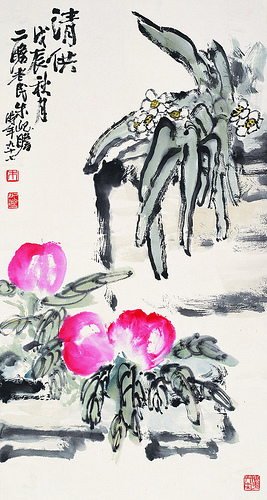 古往今來高齡的中國畫家頗多,近代為最,更難能可貴的是百歲而且耳聰目明,精爽氣閒,居之若素並揮毫作畫,神氣十足,老筆紛披,潑墨淋漓,配色堂皇,無論是冊頁小幅、丈八匹大軸,或數十尺的長卷,凝煉著一世紀多以來的丹青功力與襟懷。當年壽齡一百又三的岳丈朱屺瞻,不僅是現代中國畫壇中的人瑞,而且是中西藝術璧合的世界奇才,繪畫史上的一位大師。