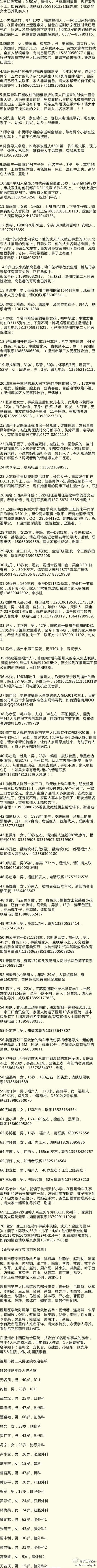 @浙江同省会:#温州动车追尾#网友微博寻亲名单最新名单,请不要吝啬你的转发。也许你的1次转发就能让家属早一些找到他们的亲人,@浙江同省会 谢谢你!!向您鞠躬了~~~