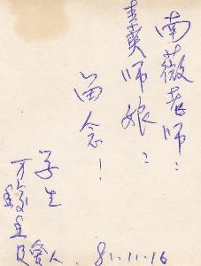 万馥香照片背面亲笔签字