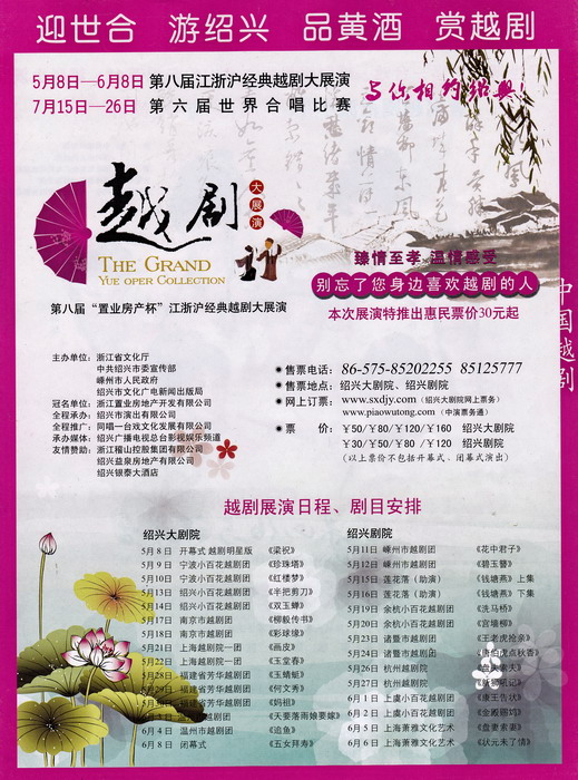 “中国文化部艺术司、中国戏剧家协会、中共浙江省委宣传部、浙江省文化厅、中共绍兴市委宣传部主办,绍兴市文化广电新闻出版局、绍兴市演出公司承办,同唱一台戏文化发展有限公司……”