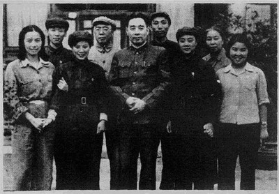 (孙维世左1、南薇左2、田汉左4、许广平右2、傅全香左3、范瑞娟右3、陈鹏右4、於《梁祝》晋京演出之时与总理合影)